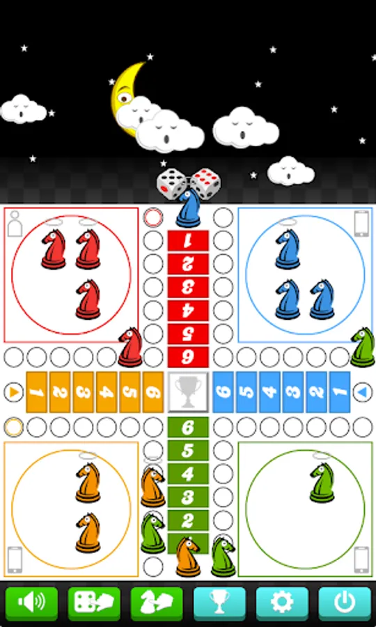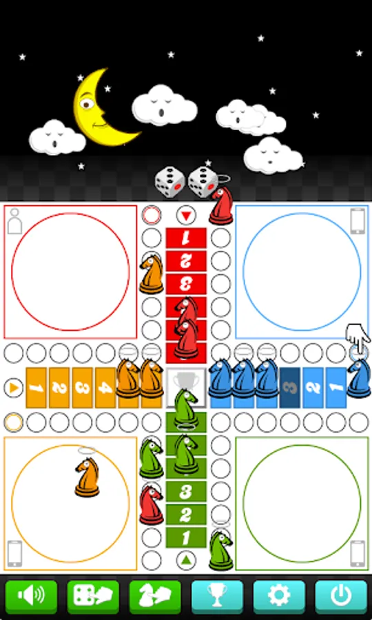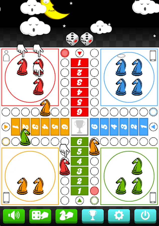 + Having selected automatic mode and automatic seeding selected dice horse if only one horse can move. This feature helps you play a game a lot faster.