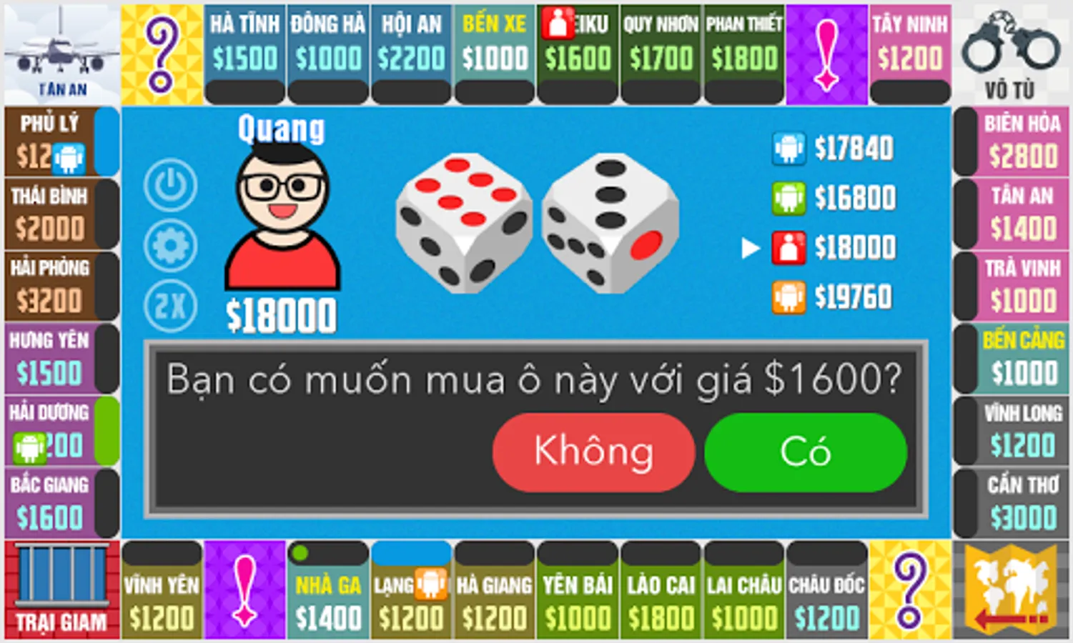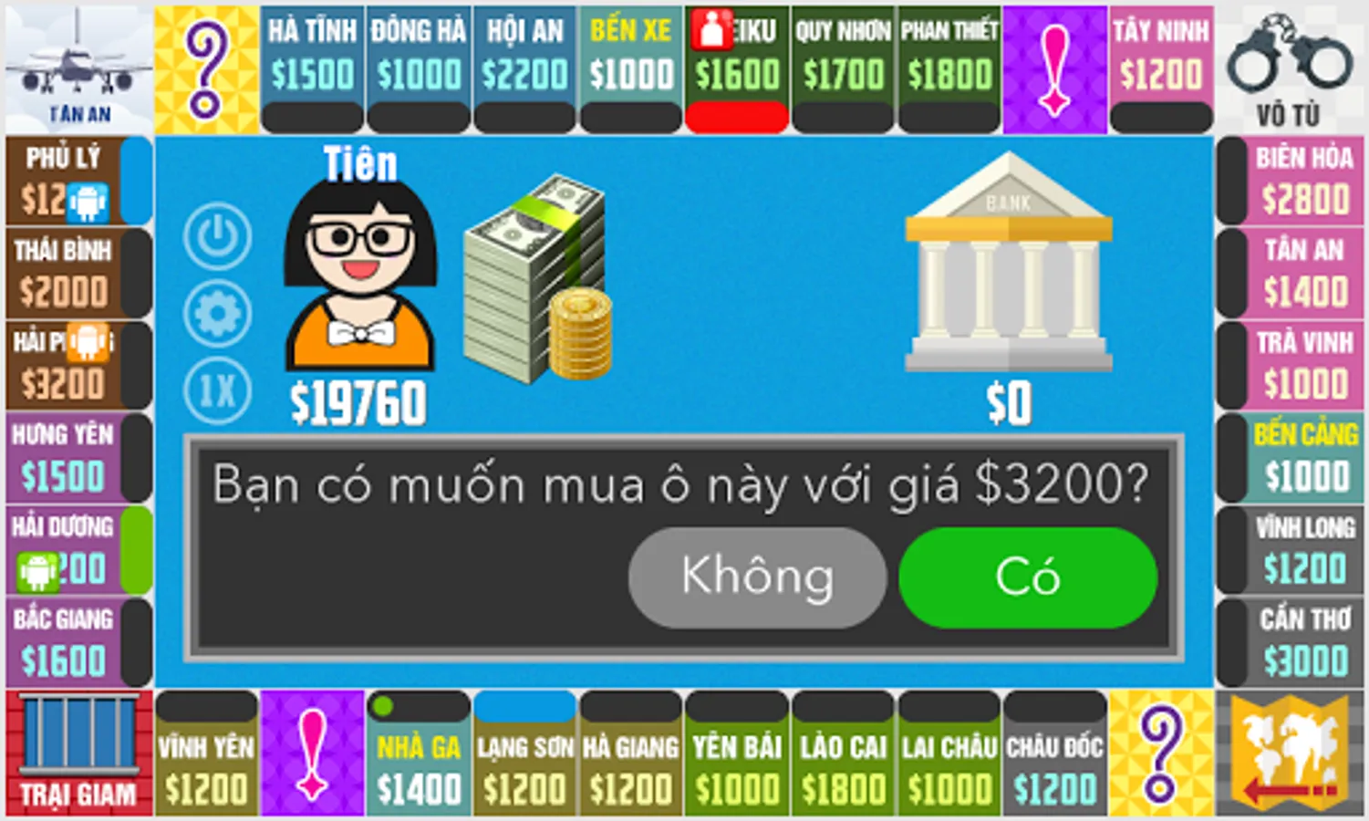 Players roll dice to move around the board. There are many different types of cells on the board as housing plots, stem, gas transportation, opportunity, in prisons, airports, ... Players will buy land and build houses on the plots they own. Along the way players can lose money for another player to come into the opponent's box, or at risk as gas transport box. The player wins when the opponent was bankrupt and become a billionaire.
