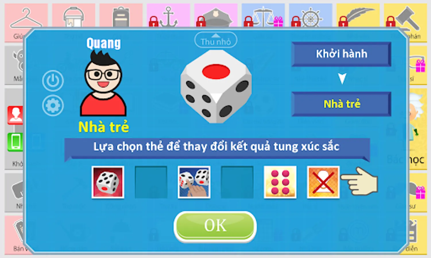 Improvement Mode, players used 6 cards to change the outcome of a dice roll. The target cell will have additional locks and Gifts. The cards in the mode Improvements include: Constraints, Lock Box, Lucky, Lai Tung, Choice. Stay.