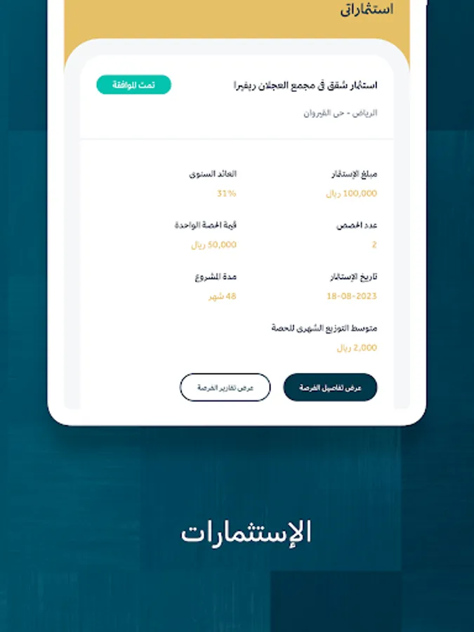 My Investments: View your investment history and track the status of each investment in detail. Enjoy investment reports and periodic updates.
