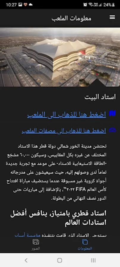 View all information about the Qatar 2022 World Cup stadiums in an easy way and in Arabic and add links with the map for each stadium