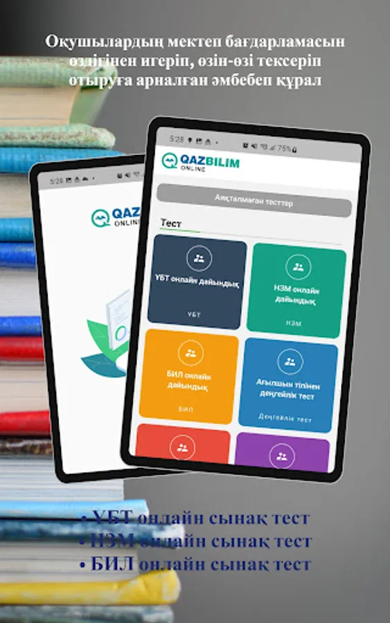 QAZBILIM.online қосымшаcы оқушылардың мектеп бағдарламасын өздігінен игеріп, білімін жетілдіріп, өзін-өзі тексеріп отыруға арналған әмбебеп құрал