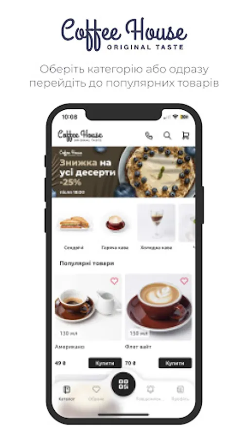 The Coffe House application allows you to view the institution's catalog, save precious time by placing online orders with yourself, follow promotions and news, send reviews about the institution's work, and a flexible loyalty system with the ability to accumulate bonuses and receive discounts will be useful to those who like to save