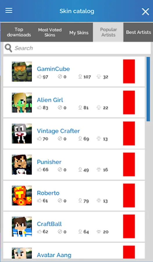 - A online catalog of skins uploaded by users, from where to download new skins already made.