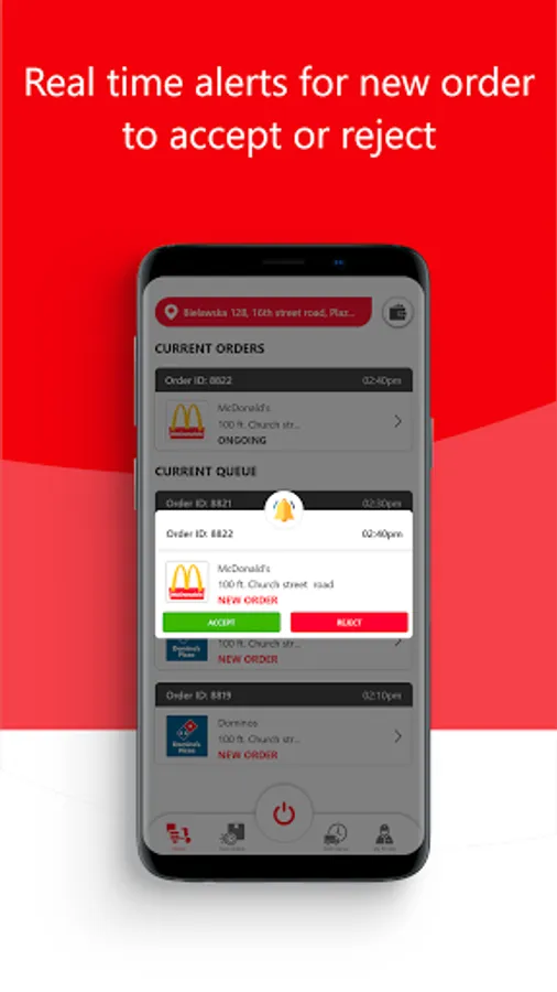 Real-time alerts allow the delivery person to know when a new order is available to accept/reject
