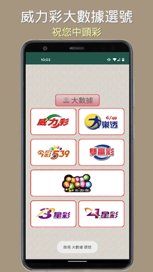 This is a set of personal lottery number generators, the best tool for Taiwan lottery lottery selection "Weilicai, Big Lotto, Jincai 539, Win Win, BINGO BINGO Bingo, 3 Stars, 4 Stars" .