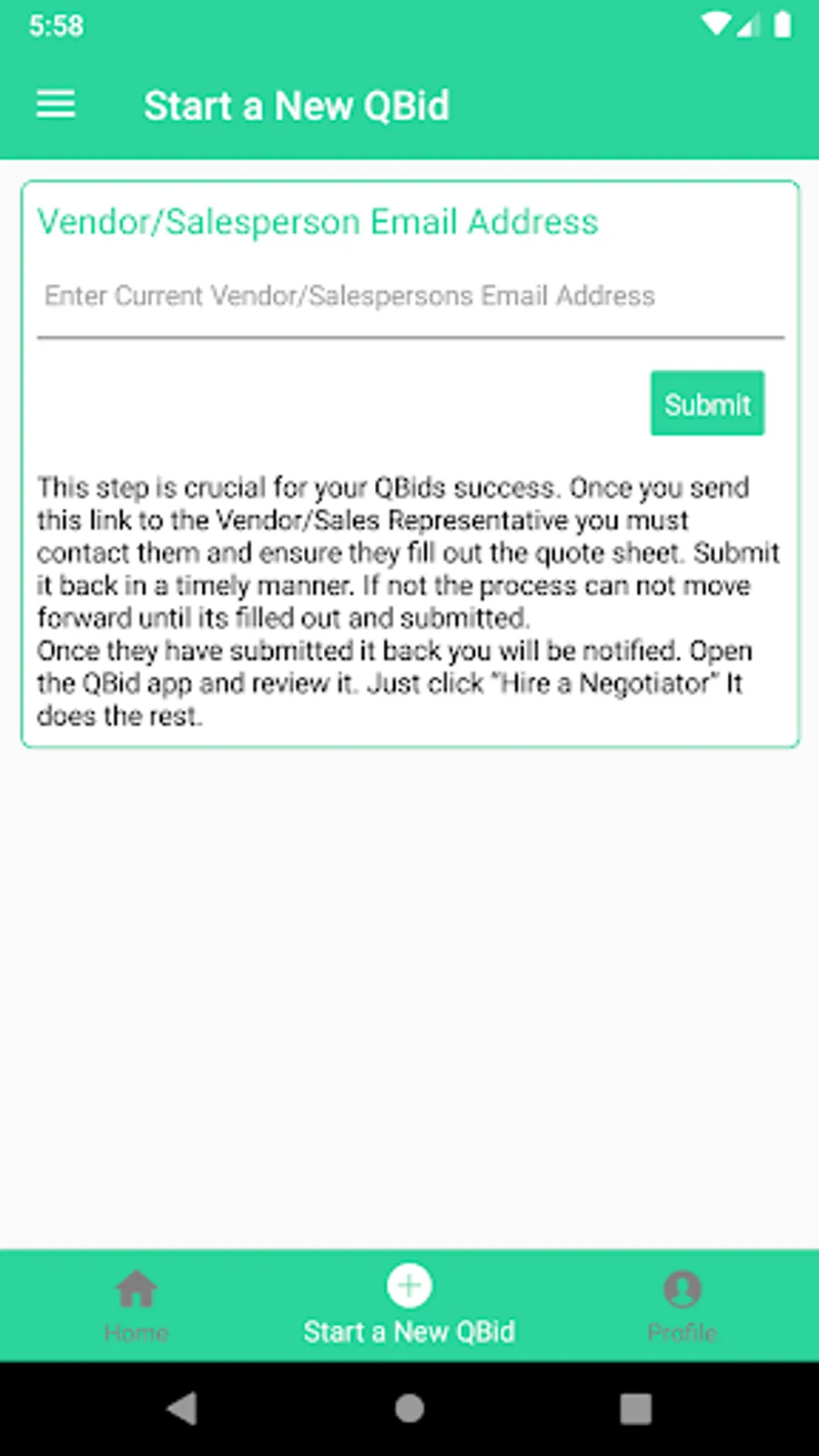 QBID is An APP that was designed and created specifically for the consumer. The consumer needs quick access to a Proven Professional Negotiator who can help you make quick honest decisions for the investment you’ve made in your project. QBID connects you with a Proven Professional Negotiator who will ensure you’re getting all the information that you need prior to your purchase decision. QBID does this through our “State of the Art” APP, affording you the opportunity to communicate with expert Negotiators, chosen for their expertise in the area you need. Their small fee is paid from a portion of the savings they provided negotiating your purchase. They don’t earn their fee unless you save! "