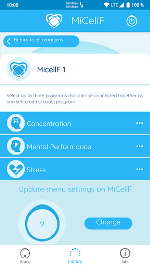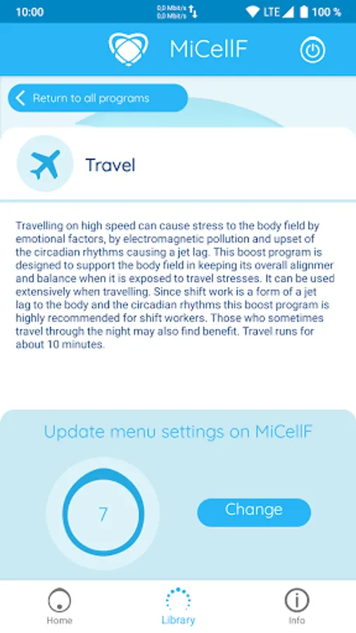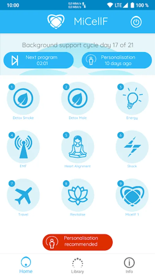 Use the MiCellF app to setup your MiCellF ONE device. The first automatic and configurable PEMF device in the world. Select and sort PEMF programs the way you want. Support your circadian balance 24/7 via personalised PEMF programs.