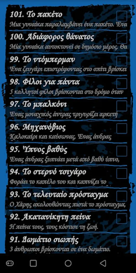 Send your own story and you may see it in the next update of the application with your name! (Please only original stories of your own invention! We already know the others)