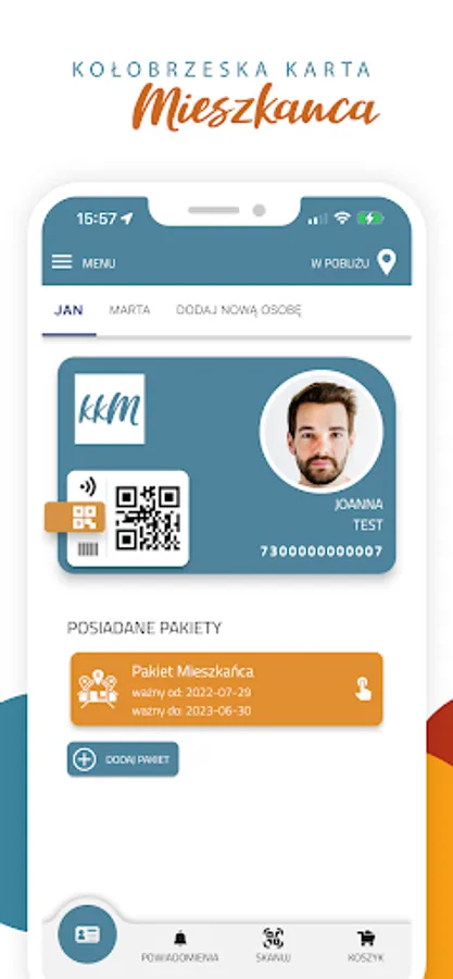 - the application replaces the physical version of the Kołobrzeg Resident Card,