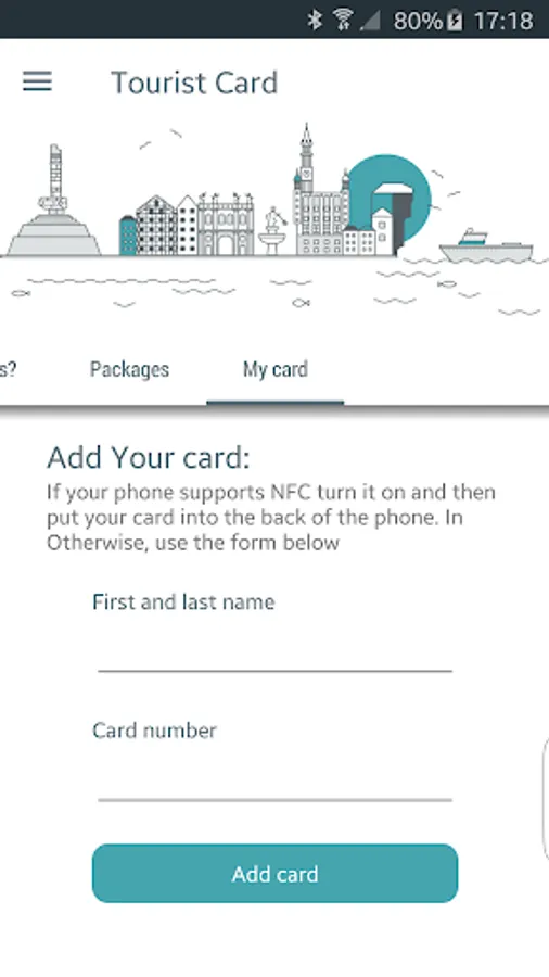 The application is integrated with the Tri-City Tourist Card System. You can pair your card with an application to manage your packages and add a new ones!