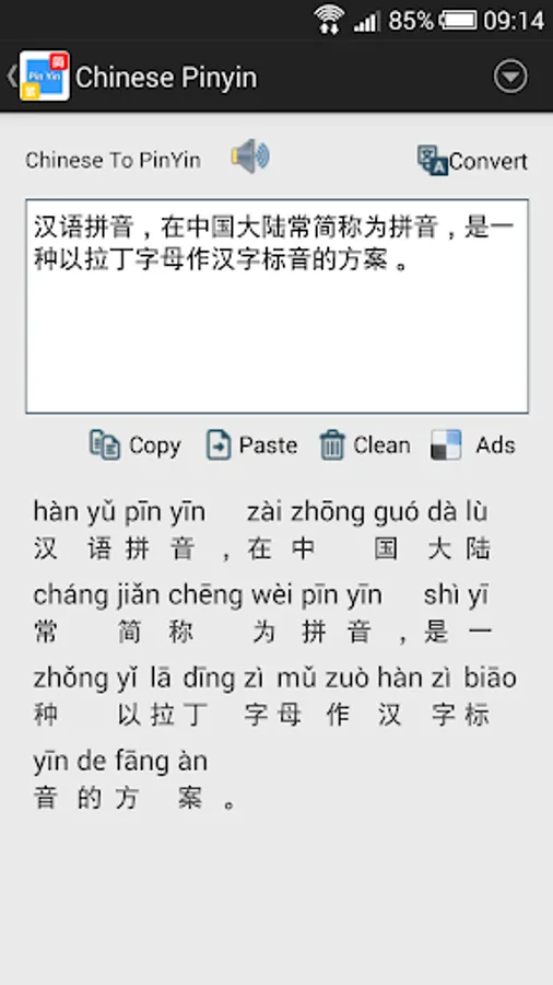 "Chinese Pinyin" converts Chinese to PinYin easily, it support also the exchange between traditional and simplified Chinese characters. One useful tool to help you to learn Chinese easier.