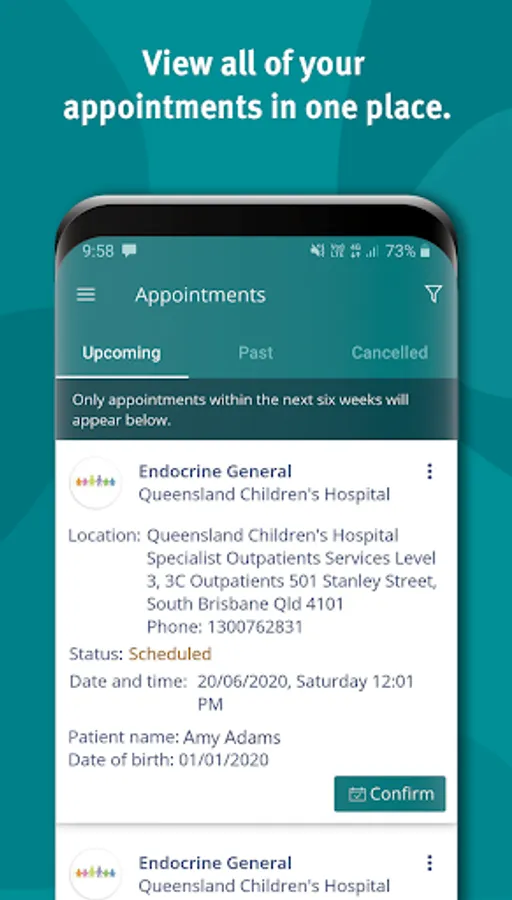 In yourQH, you will be able to view and request changes to your specialist outpatient and community appointments. You will also be able to: