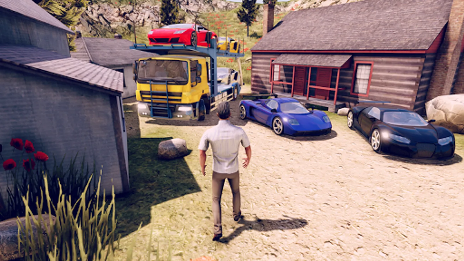 You are a truck driver named John. You can walk free in this open world, enter in your truck and transport sports cars to a destination as fast as you can. While you drive you need to avoid traffic cars and drive carefully because you can crash or damage your cargo on this dangerous mountains, hills and death roads. Park your truck at destination, exit out of it and run to your house. Earn money and buy a license for new cars and earn even more money by delivering cars. You can also unlock and drive a super sports car, deliver it by driving it to a destination.