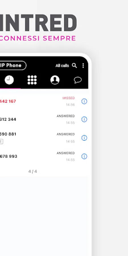 "Intred IP-Phone“ is an Internet Telephony based Soft Phone that enables you to receive and make calls on your smartphone. Connection is made to the dedicated central hosted Switching system from Intred. The App enables VoIP calls over 4G and WiFi networks and supports different types of codecs.