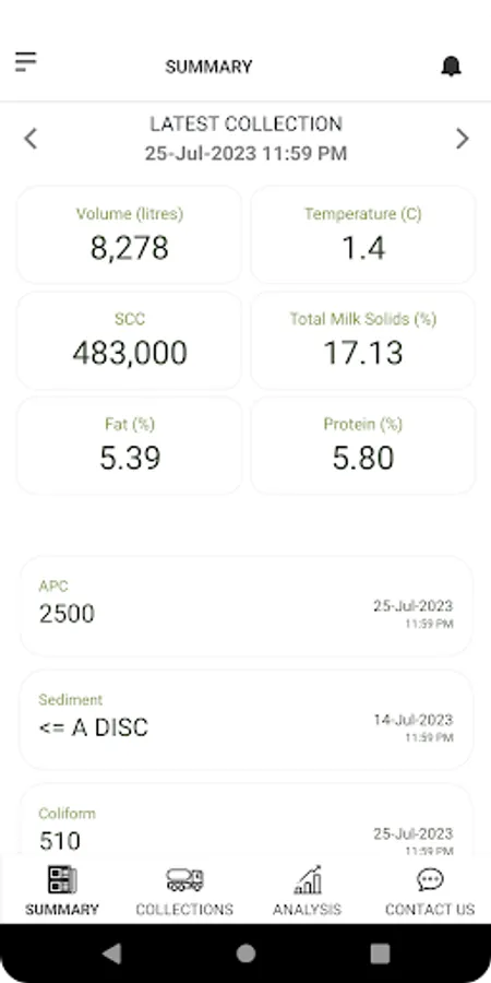 Useful FAQ, contact, and alert notifications of new collection data, and grades.