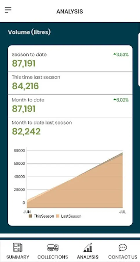 This app offers insights and analysis into milk collection results and allows Access of up-to-date milk production and milk quality data at any time. Analyse and drill deeper into each of the quality points with powerful full season to season comparison. Useful FAQ, contact, and alert notifications of new collection and result data.