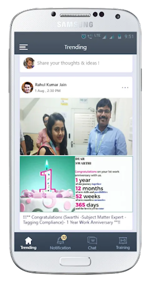 Employees can see posts on app posted by the organization and they like and comment on that.