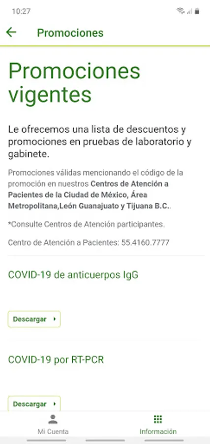 - Consult the historical information of the laboratory results; you can compare them, graph them or download them in pdf format.