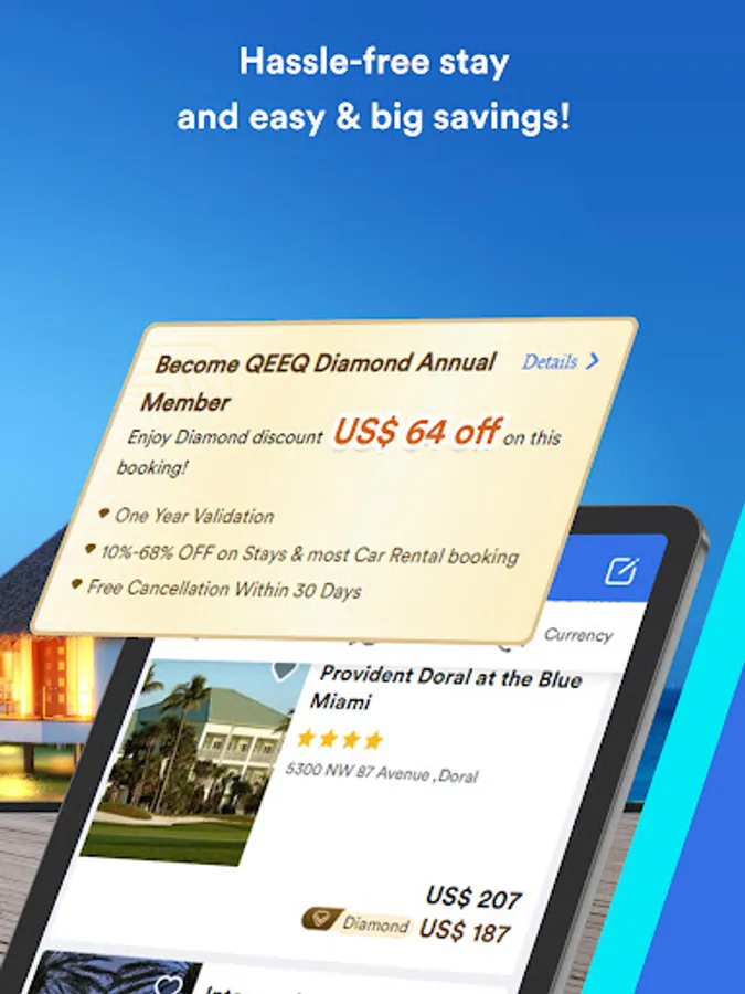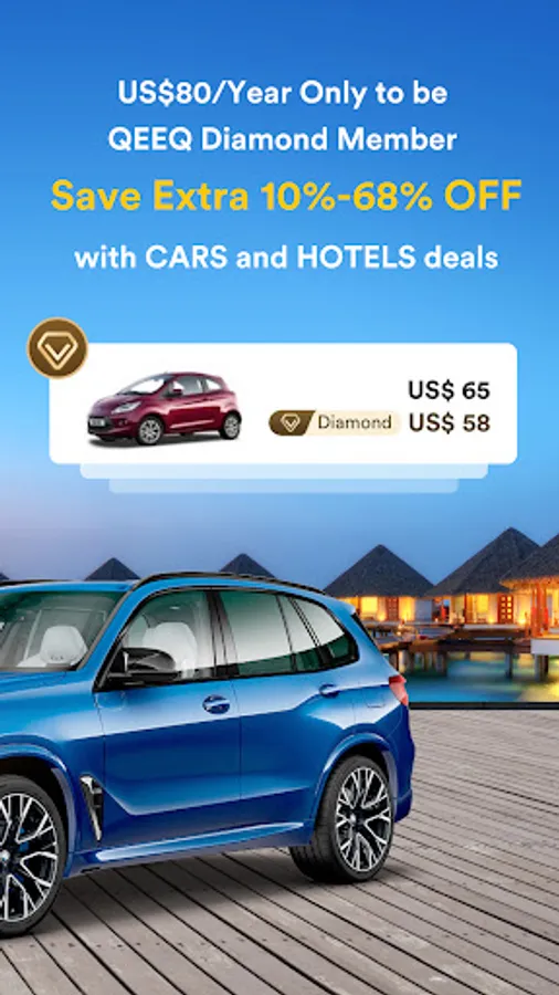 With 700,000 hotels covering, in 200 countries and regions, you can get access to the super cheap hotel deals in minutes and book a dream room from Best Western Hotels & Resorts, Accor Hotels, Cross Hotels & Resorts, Banyan Tree Hotels & Resorts, etc. In addition, can save up to 68% off when you unlock QEEQ Diamond Membership.