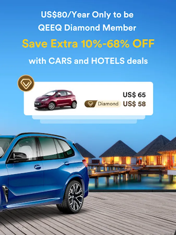 Being Diamond Memeber of QEEQ, with only US$80/year, you can start to enjoy the unlimited benefits and find the fast way to savings!