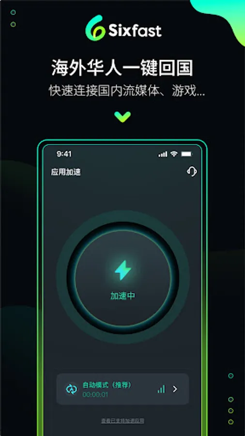 A return accelerator VPN specially designed for overseas Chinese, overseas students, overseas business trips, outbound tourism and other users Music, watching sports events, domestic platform live broadcast and other needs. One-click acceleration, one-click to enjoy extremely fast network effects.