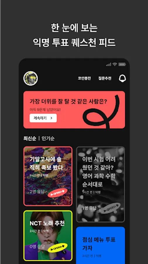 Send Cupid to get closer to each other with questions through anonymity and reveal yourself honestly.