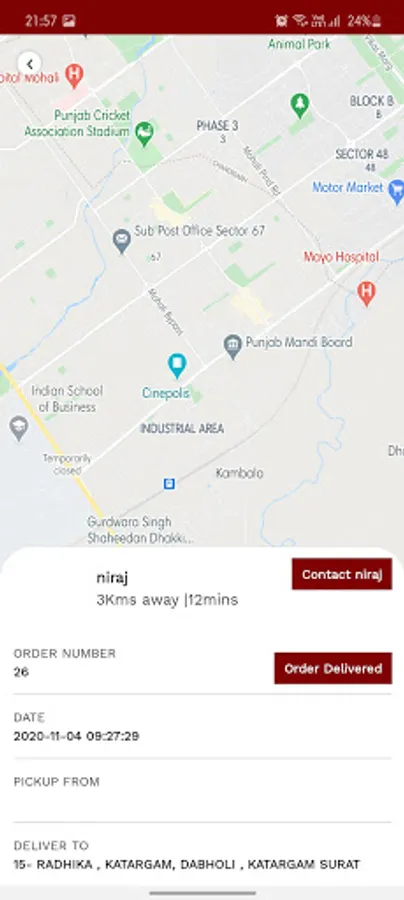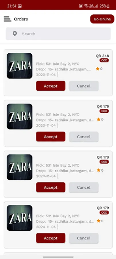 The order will show on the driver's app; here the driver will pick up of the order after this was accepted they would see as the information regarding of the customer's order (name, phone number, address) and delivery details (address, etc.).