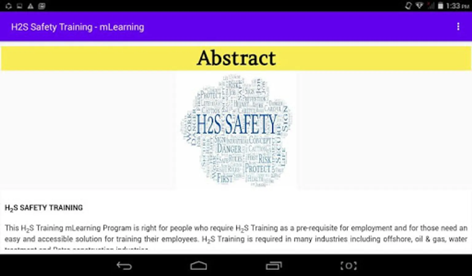 This H2S Training - mLearning Application is right for people who require H2S Training as a pre-requisite for employment and for those who need an easy and accessible solution for training their employees. H2S Training is required in many industries including offshore, oil & gas, water treatment and Petro construction industries.