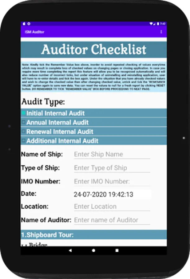 ISM Auditor APP aiding a digitally systematic and independent verification by obtaining objective evidence to determine whether the ship/company safety management system related activities comply with the ISM Code and the company policies are implemented effectively to achieve the objectives of the ISM Code.