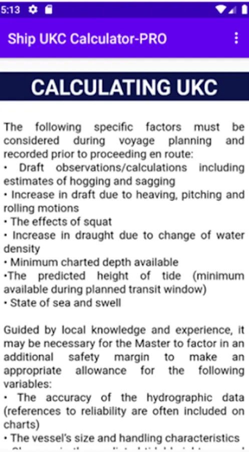 This UKC Calculator Application provides an overview on managing Ship’s Under Keel Clearance. The inaccurate determination of the UKC of any ships entering or leaving depth limited ports can have serious safety, economic, and environmental consequences.