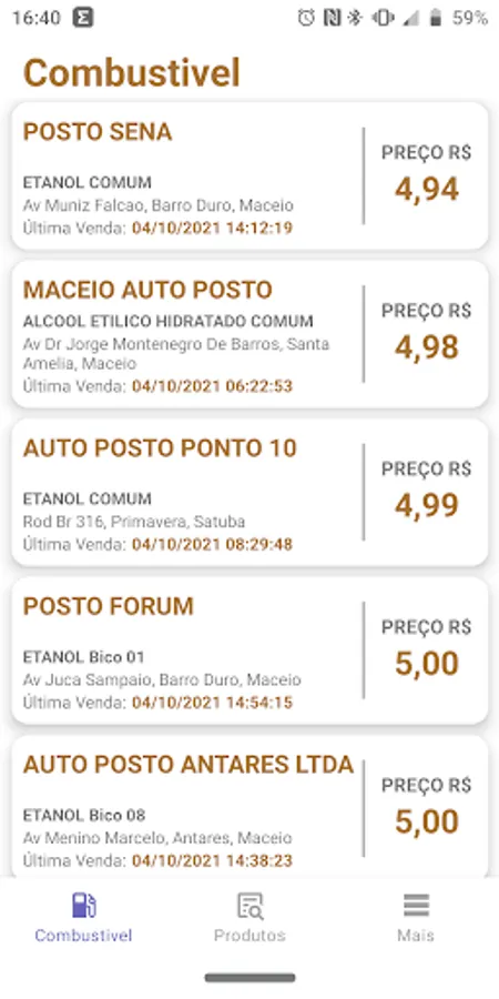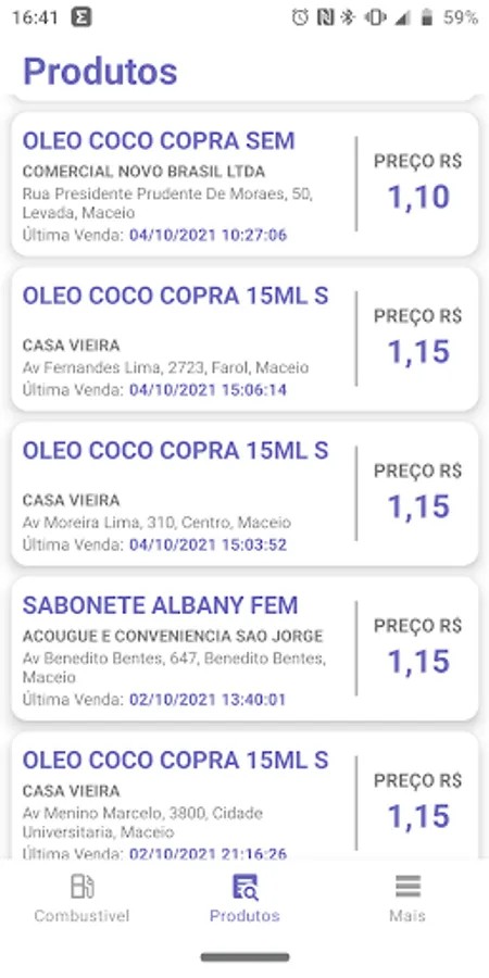 and supply. It searches the prices of the latest electronic consumer invoices (NFC-e) issued for a product or fuel and generates a price list.
