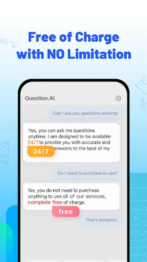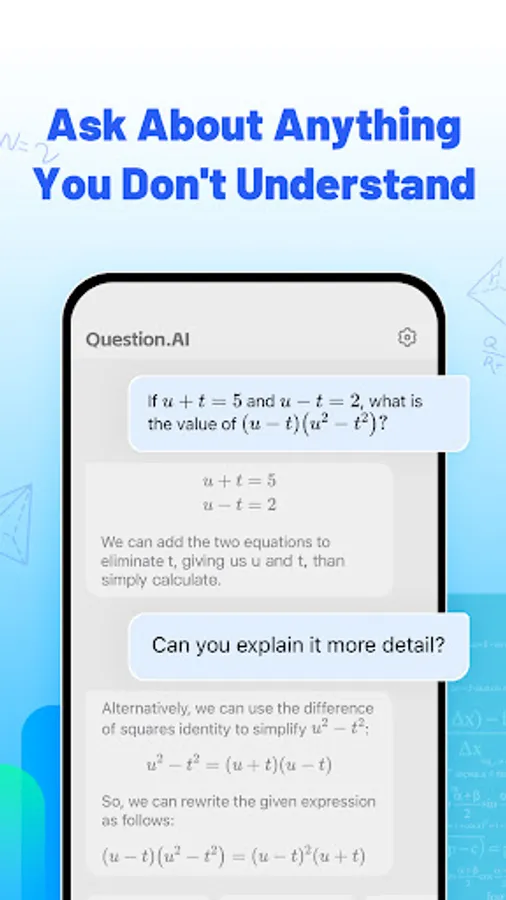 Are you tired of struggling with math problems and study questions? QuestionAI is here to help! With just a simple snap of your camera, you can effortlessly search for answers to your study questions. Our AI technology allows you to scan any problem and receive accurate answers in no time.