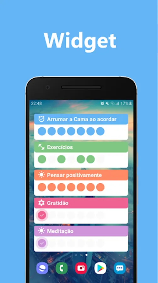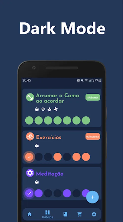 To use the app is simple, just follow the instructions on the habit registration screen to create your first habit or routine, you can also start with a suggested habit on the app's home screen, just click on one of the 5 habit options and start immediately.