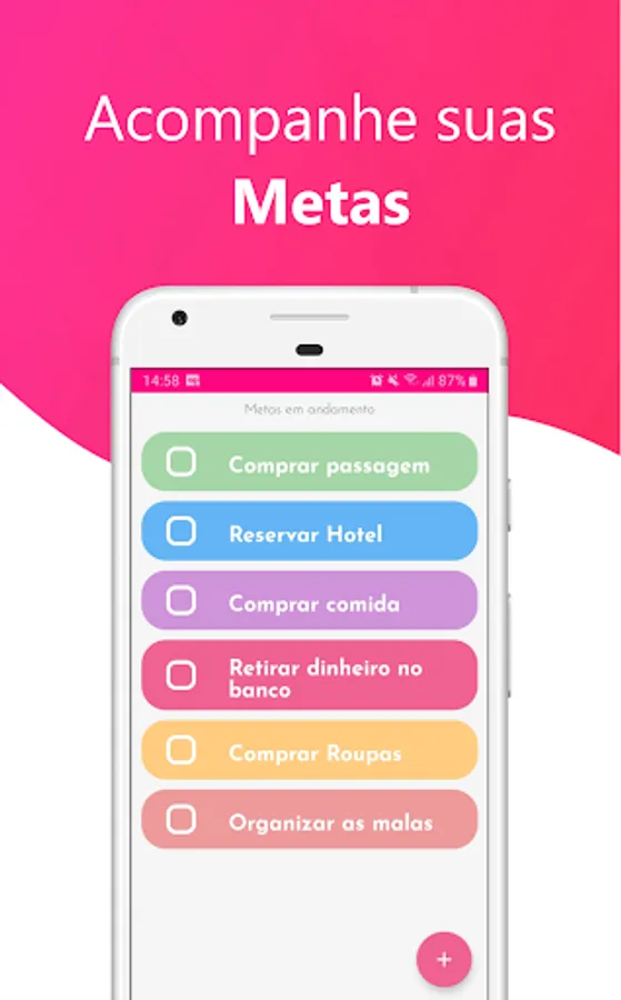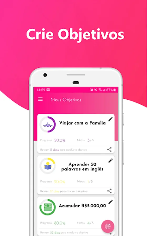 The application allows you to create a simple and effective structure, first create the goal with the right date to complete, and then you can add as many goals as necessary to complete the goal.