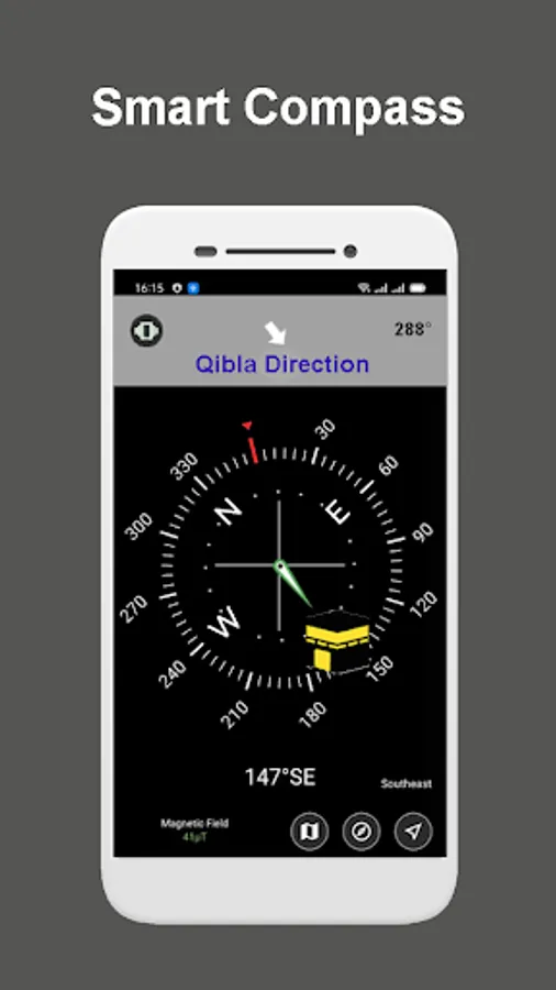 - Kaaba direction: We use smart compass combine with maps compass to find qibla location.
