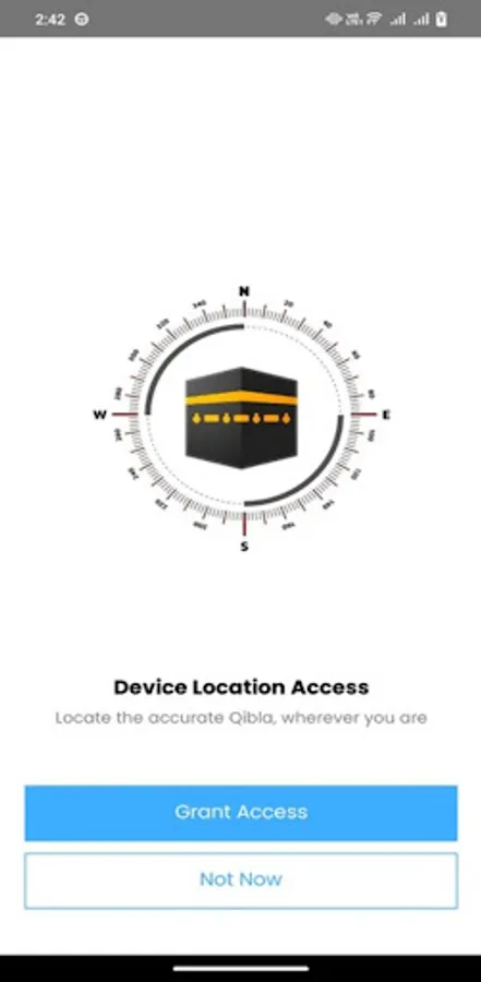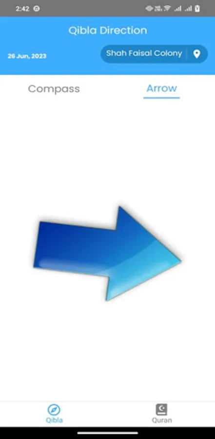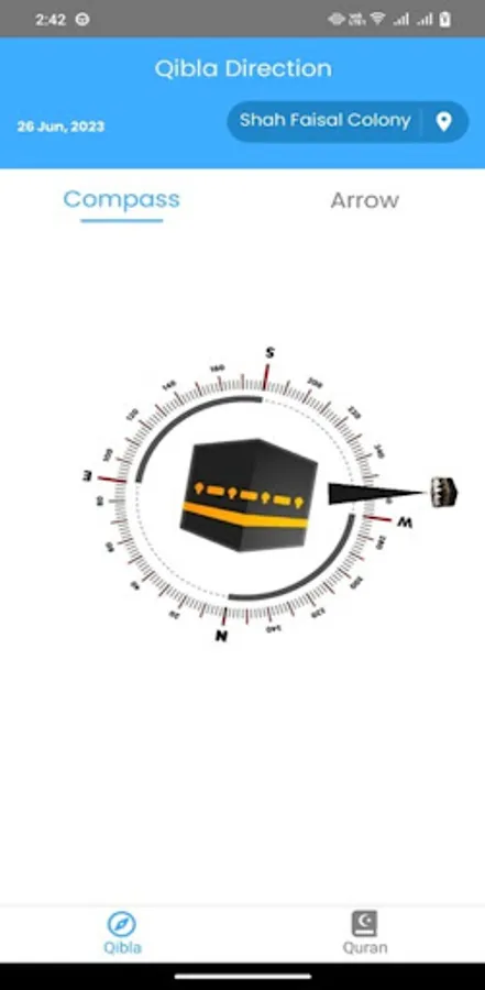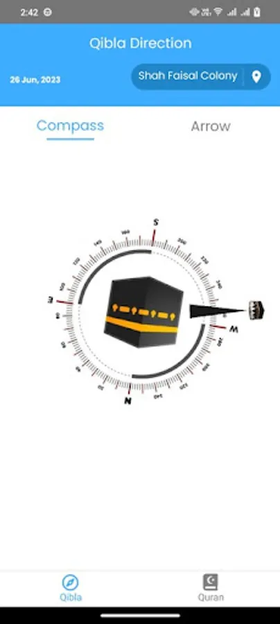 Qibla Compass - Direction app typically displays a compass needle or an arrow that points towards the Kaaba, allowing users to align themselves in the correct direction for prayer.