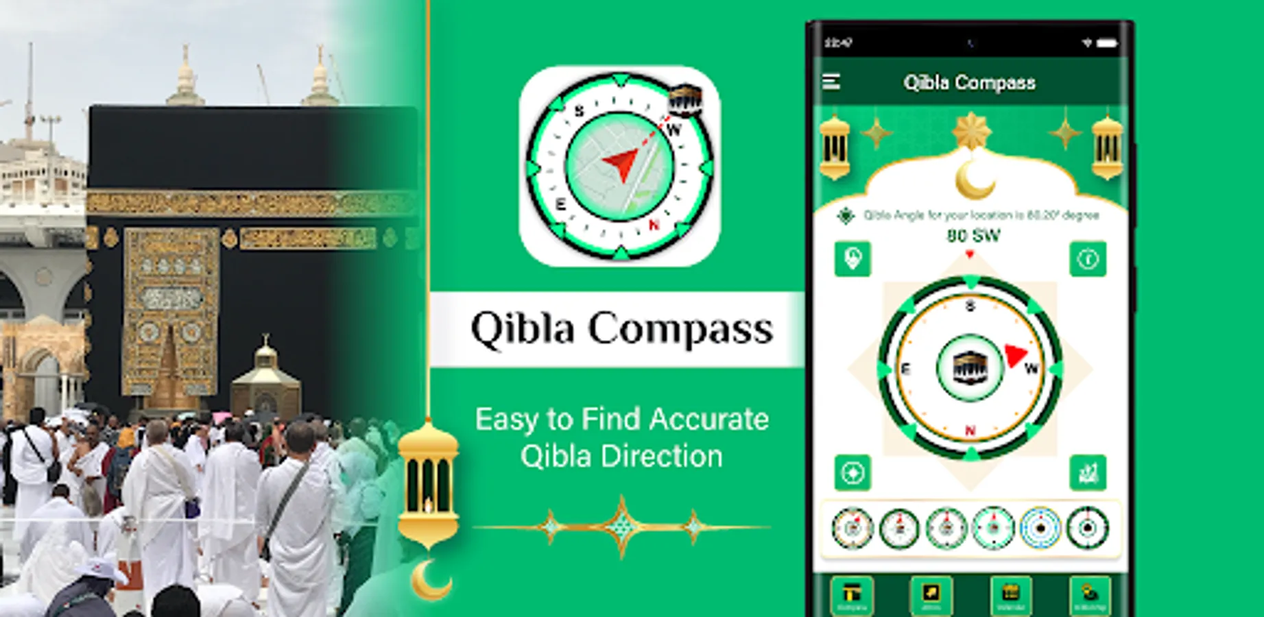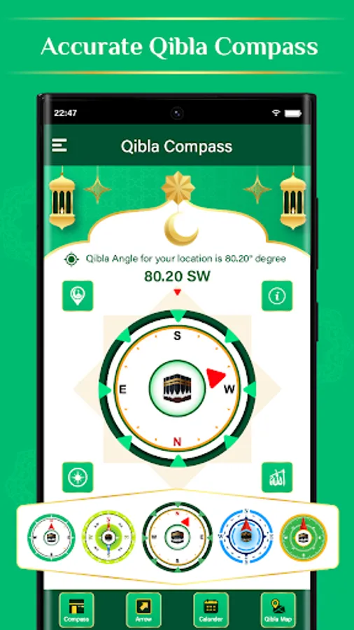 Qibla Finder – Kaaba Direction app helps you find the Qibla and provides Asma ulhusna including Qibla Compass, Qibla Direction, Qibla Map, and Qibla Finder, a database of 99 names of Allah with audio and translation in English aka Asma ul Husna. The app helps you find the direction of the Kaaba in Mecca with just a tap, using Qibla Compass and Khana Kaba location on compass. The built-in Islamic Calendar provides the current Hijri date, Islamic holidays and festivals. Find nearby Mosques and find the Qibla. It's the perfect companion for your daily Salah (prayer) and find the Kaaba, offering accurate Qibla direction and mosque near me on the go.
