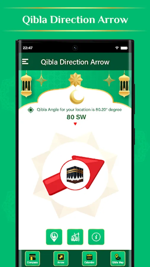 Qibla Compass: A digital compass that helps users find the direction of the Kaaba in Mecca, which is considered the holiest site in Islam and is the direction Muslims turn to face when praying.