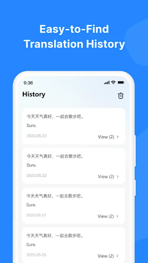 •All your translated content will be saved locally and any of it can be searchable through the History list, even with an unstable internet connection.
