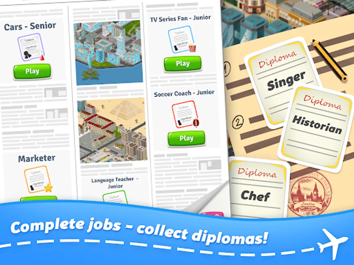 Explore the world from the comfort of your home with Backpacker, a trivia travel game like no other. Dive into an immersive world quiz, answering questions about global landmarks, cultures, and fascinating trivia. Each city you visit in this travel game presents a new set of challenges. Test your knowledge with our world quiz, answering questions about iconic landmarks, unique cultural practices, and lesser-known facts. As you explore the world, you'll earn diplomas and collect souvenirs as tokens of your virtual travels, making each quiz a memory to cherish.