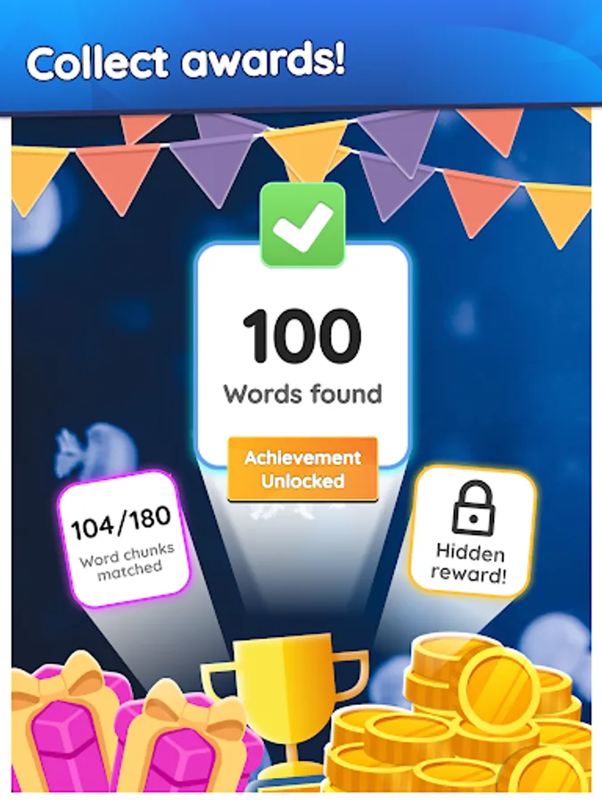 🏆Exciting rewards! Complete goals and achievements in the word game and earn coins and trophies! Find the word, beat your score and climb the leaderboards with other players!