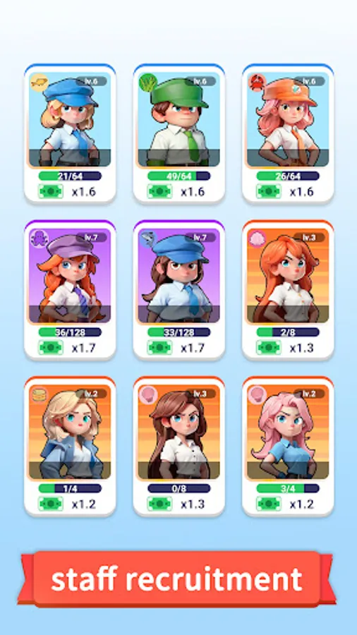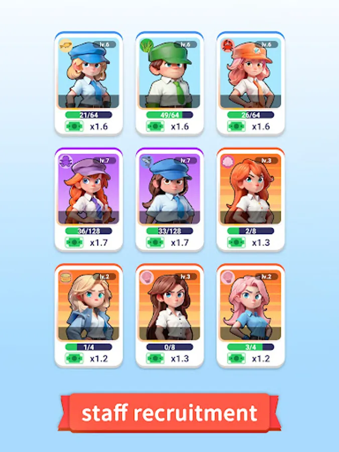Upgrade staff and upgrade various fish products in the game. Build a huge parking lot to attract more customers.