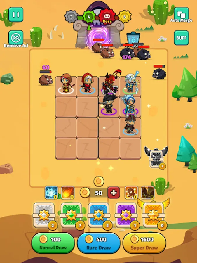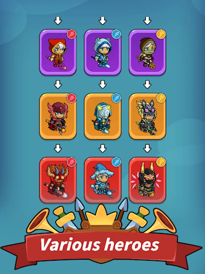 · Randomly draw heroes, synthesize the same heroes, and obtain high-level heroes to improve combat effectiveness.