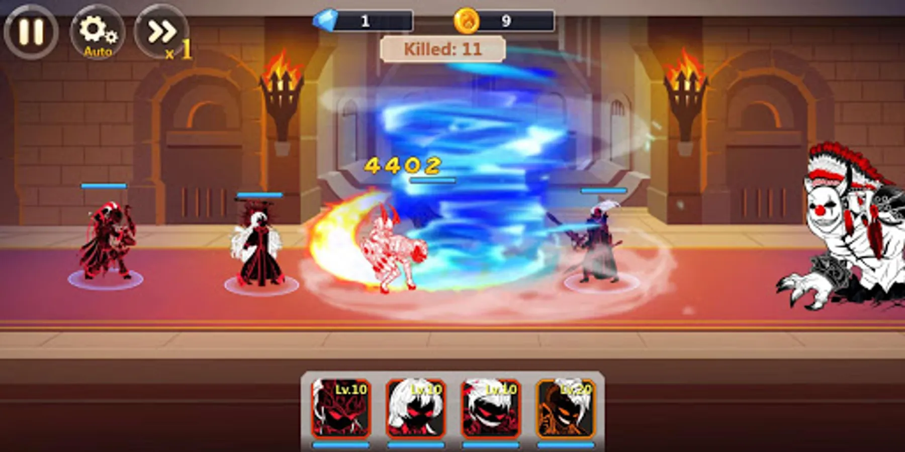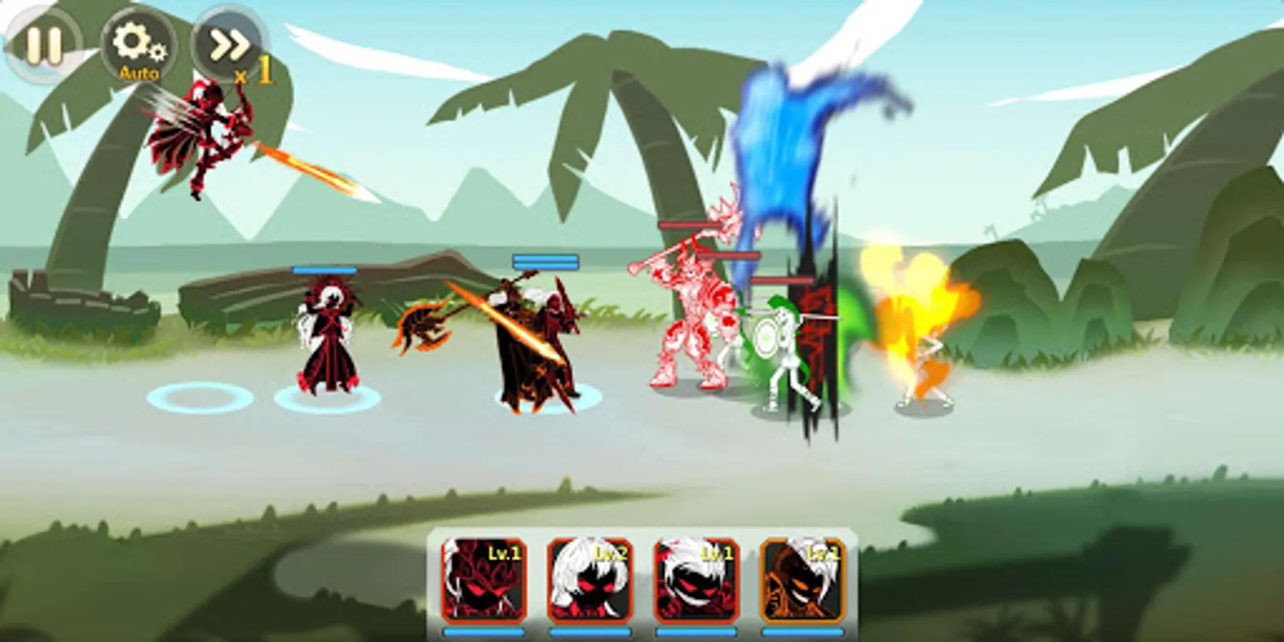 All stickmen! Swordsman, Mage, Archer, Ax King, launched the final attack towards the White army!
