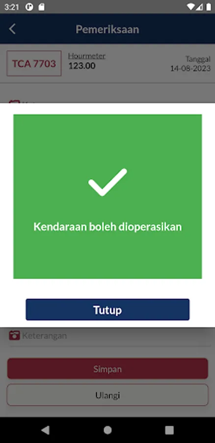 An application made by untumedia for recording mining vehicle checks for Kaltim Diamond Coal