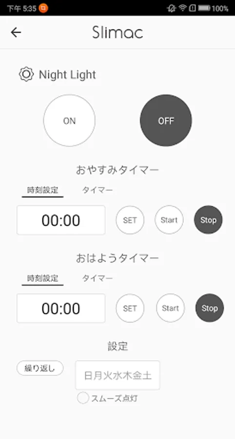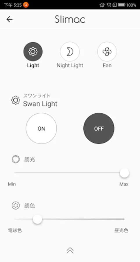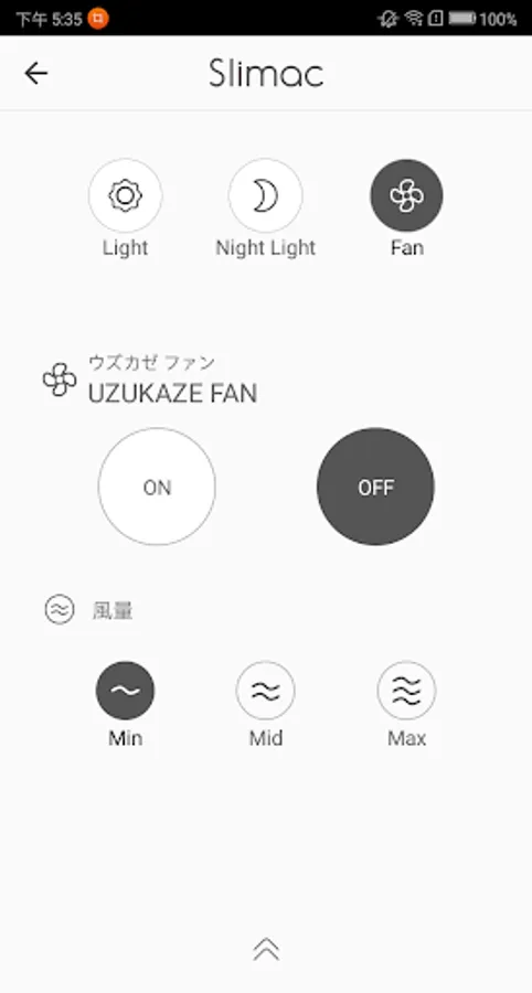 This APP connects the slimac UZUKAZE to the net and adjusts the light ON / OFF and light control, toning, security light ON / OFF, fan ON / OFF and air volume with 3 steps. You can set lights and fans off, good morning timer.