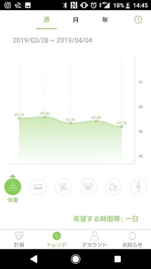 -Graph display "Trend screen": Check daily changes of each item at a glance. It is also possible to switch to the result display by hour in the morning / afternoon.