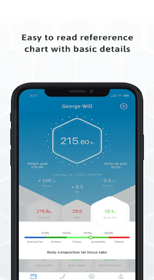 Now you can track an unlimited number of users to monitor the health of you and your family from one convenient place. The best part is that EROS Smart Body Fat Scale will provide you with all the important body composition metrics, such as; body weight, body fat, body water, muscle mass, body mass index, basal metabolic rate, visceral fat, metabolic age, skeletal muscle, protein, fat-free body weight, and even subcutaneous fat so that you know exactly how you are doing in your fitness progress.