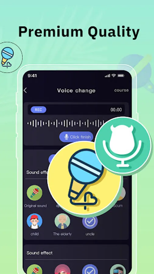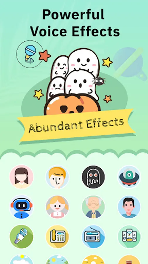 • More than 25 effects: robot, alien, zombie, helium, sleepy, chipmunk, death, cave, underwater, devil, telephone, swirl, fan, ... and many more!